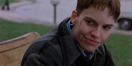L’intensa espressione di Hilary che interpreta Brandon Teena