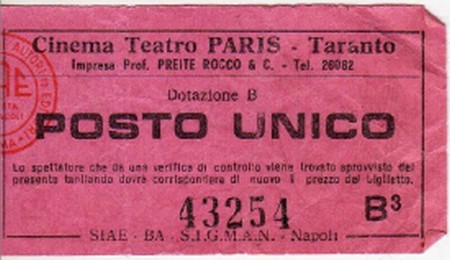 Andavamo al cinema-Parte 43 » Biglietto Cinema Paris Taranto