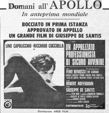 Un apprezzato professionista di sicuro avvenire,un film di Giuseppe De Santis. Con Femi Benussi, Yvonne Sanson, Andrea Checchi, Robert Hoffman, Riccardo Cucciolla,Ivo Garrani, Lino Capolicchio, Nino Vingelli, Massimo Serato, Vittorio Duse, Sergio Serafini, Lina Alberti, Enrico Papa, Luisa De Santis